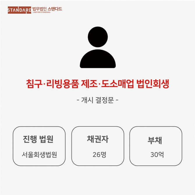 [법인회생] 침구·리빙용품 제조·도소매·전자상거래업, 서울회생법원, 부채 30억, 개시결정문