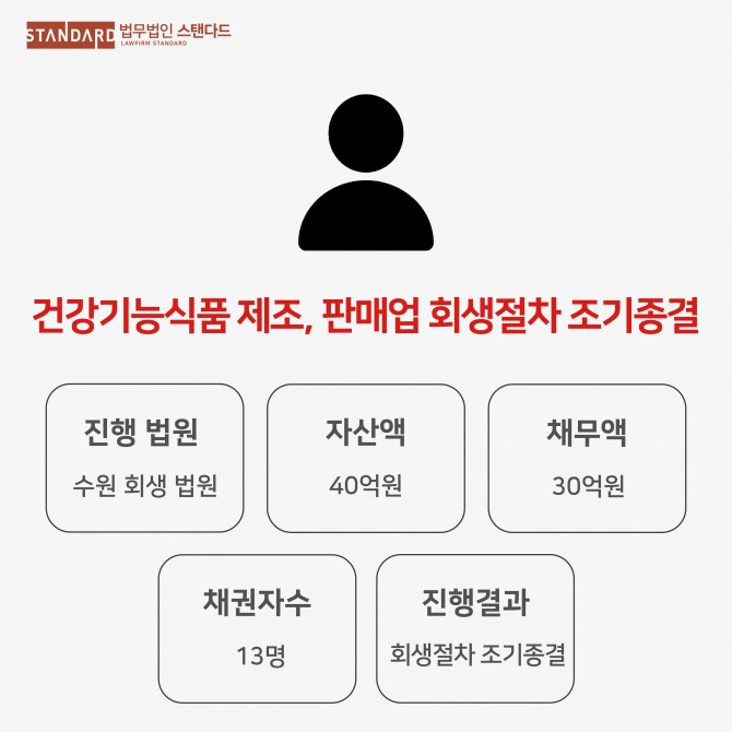 법인회생 성공사례 - 건강기능식품 제조 · 판매업 회생절차 조기종결