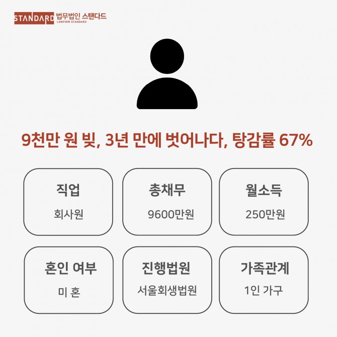 개인회생 성공사례 - 9천만원 빚, 3년 만에 벗어나다, 탕감률 67%