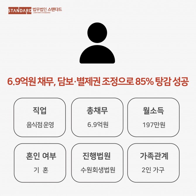 개인회생 성공사례 - 6억 9천만 원 채무, 담보·별제권 조정으로 85% 탕감 성공