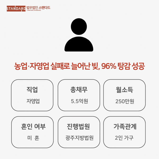 개인회생 성공사례 - 광주지방법원 농업·자영업자 실패로 늘어난 빚, 96% 탕감 성공